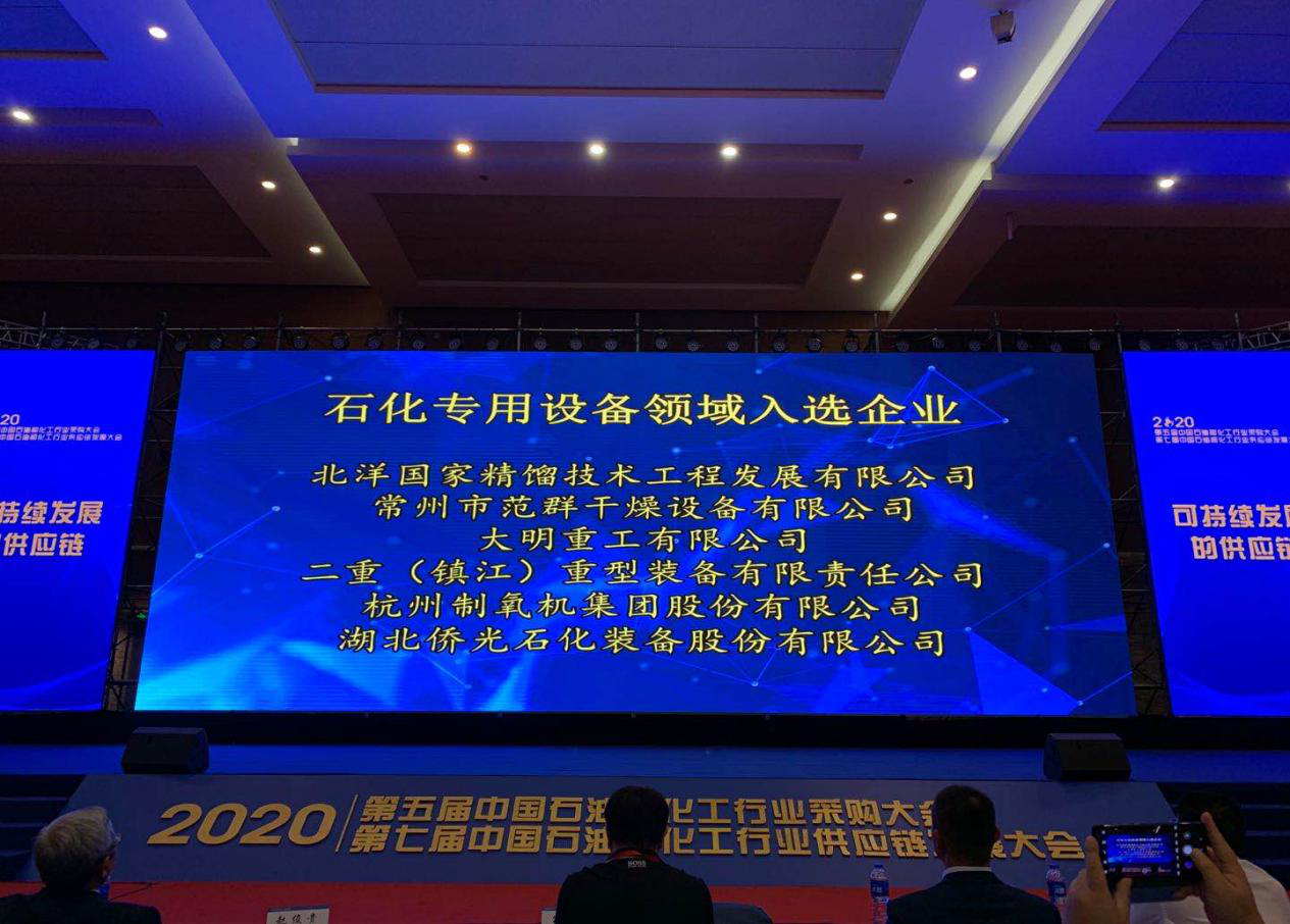 據(jù)悉,本次大會以“可持續(xù)發(fā)展的供應(yīng)鏈”為主題,共持續(xù)3天,參會代表千余人,來自跨國公司、工程公司、典型石化企業(yè)、優(yōu)質(zhì)供應(yīng)商的代表及專家深入分析了中國石化行業(yè)供應(yīng)鏈的現(xiàn)狀和問題,提出了可持續(xù)發(fā)展的方法和路徑,強(qiáng)調(diào)通過供采雙方的協(xié)同發(fā)展實現(xiàn)合作共贏。會上還發(fā)布了“2020中國石化行業(yè)百佳供應(yīng)商”榜單。常州范群作為國內(nèi)干燥設(shè)備行業(yè)的供應(yīng)商,斬獲2020年石化機(jī)械類“中國石化行業(yè)百佳供應(yīng)商”的殊榮。