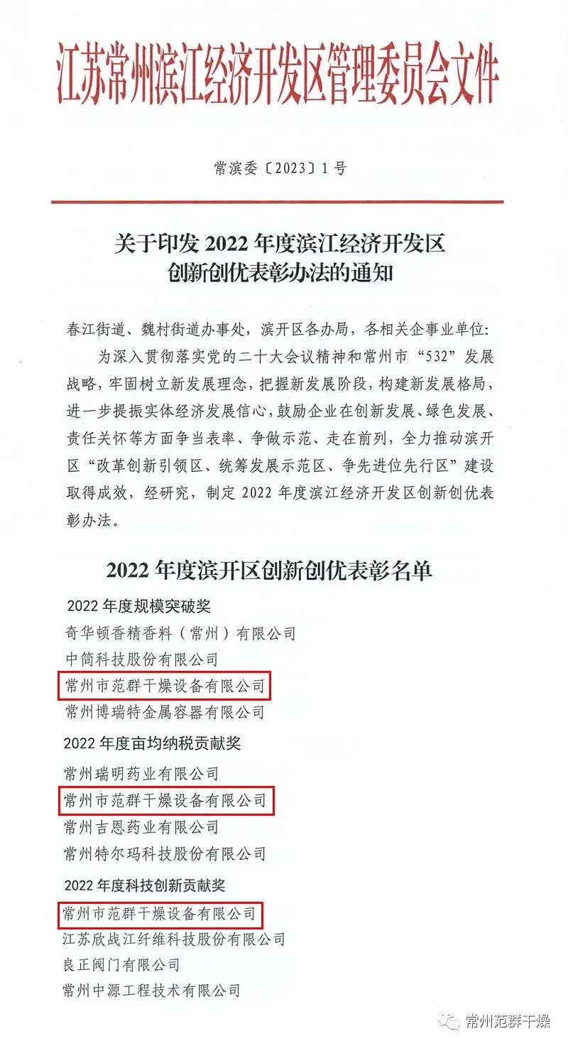 為全面貫徹落實(shí)黨的二十大精神和中央、省委經(jīng)濟(jì)工作會議及市區(qū)兩會精神,充分發(fā)揮濱開區(qū)“爭第一、創(chuàng)唯一、勇當(dāng)一流”的標(biāo)桿引領(lǐng)作用,1月11日,“春已至 共WE來” —濱開區(qū)2023年中外企業(yè)迎新聯(lián)誼會召開。常州范群榮獲2022年度”規(guī)模突破獎““畝均納稅貢獻(xiàn)獎”“科技創(chuàng)新貢獻(xiàn)獎”。