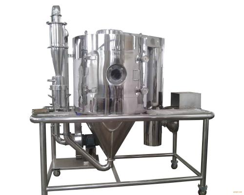 所謂噴霧干燥機即是利用離心式霧化器將某些液體物料進行干燥,是目前工業生產中使用最廣泛的干燥機之一。噴霧干燥是液體工藝成形和干燥工業中最廣泛應用的工藝。最適用于溶液、乳液、懸浮液和可泵性湖狀液體原料中生成粉狀、顆粒狀產品。因此當顆粒大小分布、殘留水分含量、堆積密度和顆粒形狀符合精確的標準時,噴霧干燥是一道十分理想的工藝。